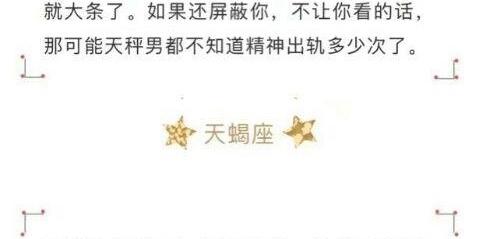 可能在现在的世界中,真真正正的善良已经完全不存在了,但是还是会有那么一些可爱的星座,待人处事都本着一颗善良的心,非常的纯粹。 【12】金牛座 稳重的金牛思维细腻在情场上没有手段,只有耐心。表面一副木讷,内心炽热。金牛大部分的恋情都处于暗恋状态,追人时喜欢偷偷摸摸对人好,不敢让人知道,假装不喜欢,但又会无意的接近,旁人看了真让人急死,连表白都不敢,还敢耍什么手段? 【11】摩羯座 摩羯只会非常中规中矩地谈恋爱,既没有什么手段,也没有什么主见,基本一直处于被动的一方,被别人牵着鼻子走。如果有情敌出现,输的概率占九成以上。 【10】处女座 处女在情场上最拿手的绝技就是耐心和毅力。只要是他想要的,没什么是他们得不到的,感情也如此,遇到心动时刻,处女们会表现的很主动,哪怕被拒绝了,也不会灰心,只会继续努力。 【9】白羊座 白羊胆子大,敢爱敢恨,在感情上不是一般的莽。只要自己喜欢就会直接贴上去。他们敢于追求,敢于表白,单刀直入,情场上的白羊如果会犹豫了,就只有一个原因,那就是不确定自己到底是不是真的爱上了对方。 【8】狮子座 狮子在喜欢的人面前,会变得很主动、很积极,很希望能有所表现,就是那种主动和你接近,没事儿和你唠嗑,不是给你割草,就是给你朗诵诗歌,还总找机会向你暗送秋波的人,算是比较土的情场手段吧。 【7】水瓶座 水瓶的情场手段,在于个人的神经质,让人琢磨不透,有股子神秘感,很吸引人。但这种手段是天生自带的,而不是瓶子刻意使出来的,自带撩妹/汉技能的人,也是让人羡慕呀。 【6】巨蟹座 巨蟹不是个主动的追求者,性格方面较为腼腆。巨蟹们绝不会放过接近上心人的任何机会。这个星座一旦喜欢上后,特点就是能吃醋,爱吃醋,见不得你和别人好,但其实酸中透露出浓浓的爱,仔细观察爱上你的巨蟹,你就会发现他们的体贴入微,他们的的浓情深入。 【5】双鱼座 双鱼座恋爱时多数像个长不大的孩子,但也有成熟稳重的一面,这些特点能很快获得异性的好感。双鱼们特别擅长制造浪漫,拥有专属于自己的光芒,能够快速吸引异性的目光。在情场里双鱼座往往都在舞台的中央。 【4】射手座 别的没有,只有热情、真诚、幽默。什么!?这也叫有手段?对呀,因为这样的人在异性堆里真的很吃香。把你的闺蜜、挚友都搞定了,让他们帮忙多吹吹耳旁风,还怕搞不定你吗? 【3】天蝎座 天蝎在情场上从不缺乏手段,只要是他们喜欢的,他们都能想办法把对方吃得死死的,他们能在第一时间知道对方的弱点,因此获得对方的信任,也获得了对方的好感。总之,天蝎手段很多,对于真心喜欢的,也一直不乏套路。 【2】天秤座 天秤本身就是情场老手,大多数人的心中天秤的形象总是好的。天秤们往往都很亲和,让人一见如故。他们善于在异性面前表现自己的善良,因此给对方留下好印象。在社交中的天秤不骄不躁,不快不慢的脚步都能和任何一个人搭上调,可能这就是他的最终情场秘籍吧! 【1】双子座 论情场手段,双子妥妥稳坐第一。双子们嘴甜活好又可爱,进退有度,很难让人不爱。情商高小嘴巴特别会说话,天天撩的你心痒痒,和双子们恋爱可真的被哄得妥妥转,一会山盟海誓,一会儿海角天涯,双子们可谓是十二星座中的恋爱达人。
